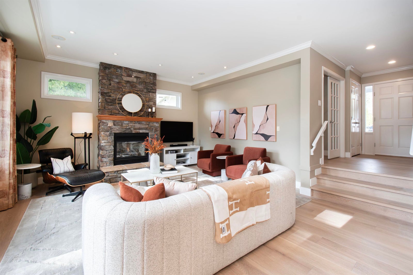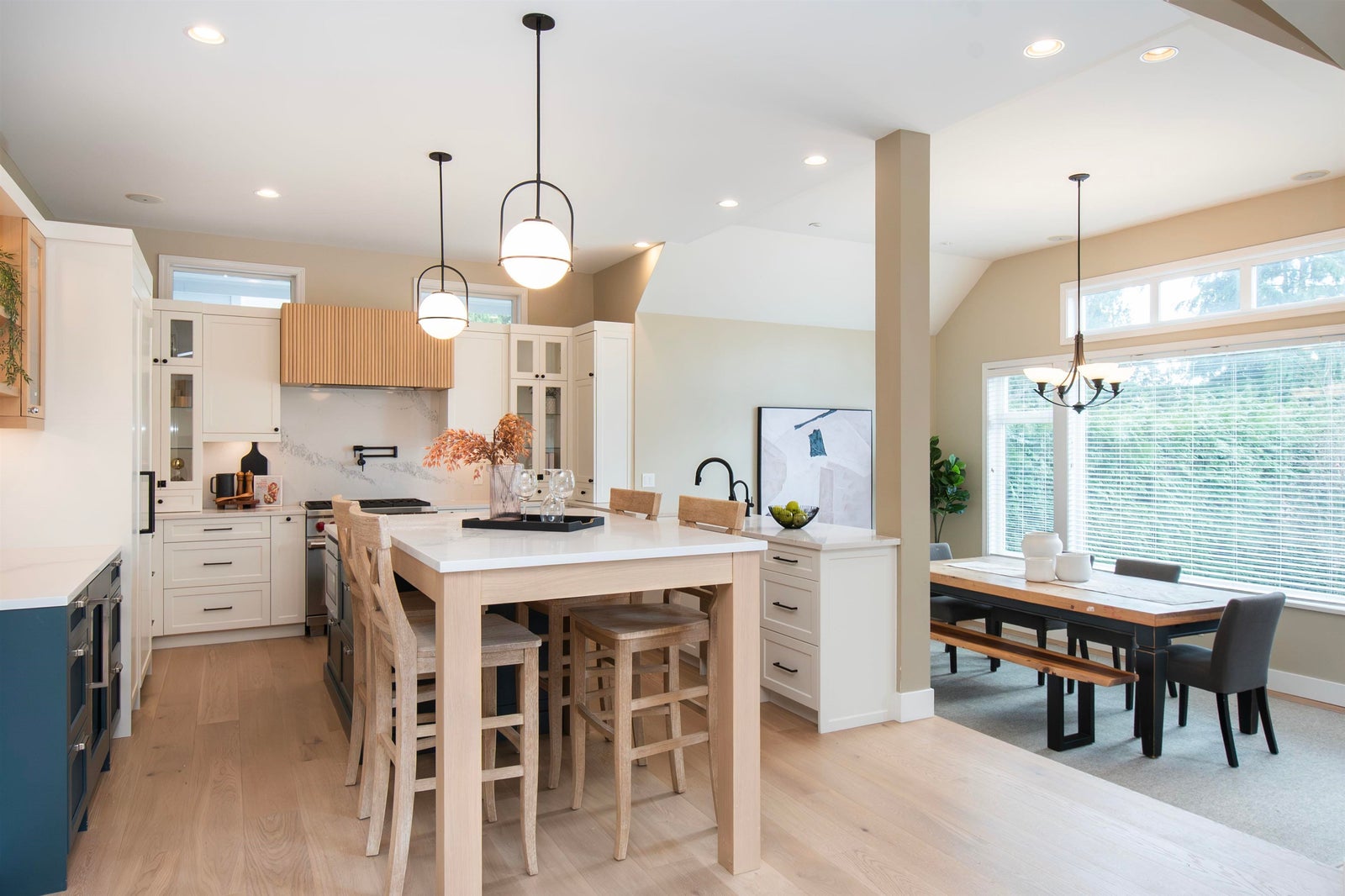 Beautiful craftsman style home on a quiet cul-de-sac just moments from Edgemont Village. Thoughtfully updated by the current owners, the main level features soaring ceilings, two office spaces, a stunning renovated kitchen with top-of-the-line appliances, white oak hardwood flooring, and custom built-ins. The open living and dining areas lead to a sunny balcony overlooking the private southwest facing backyard. Upstairs offers three bedrooms including a spacious primary suite. The bright above ground lower level includes a fourth bedroom, bathroom, recreation and media room. Exterior painted in 2025 plus recent upgrades including hot tub, backup generator and new washer and dryer. Double garage with EV charger and plenty of parking. Walk to shops, parks and top North Vancouver schools.